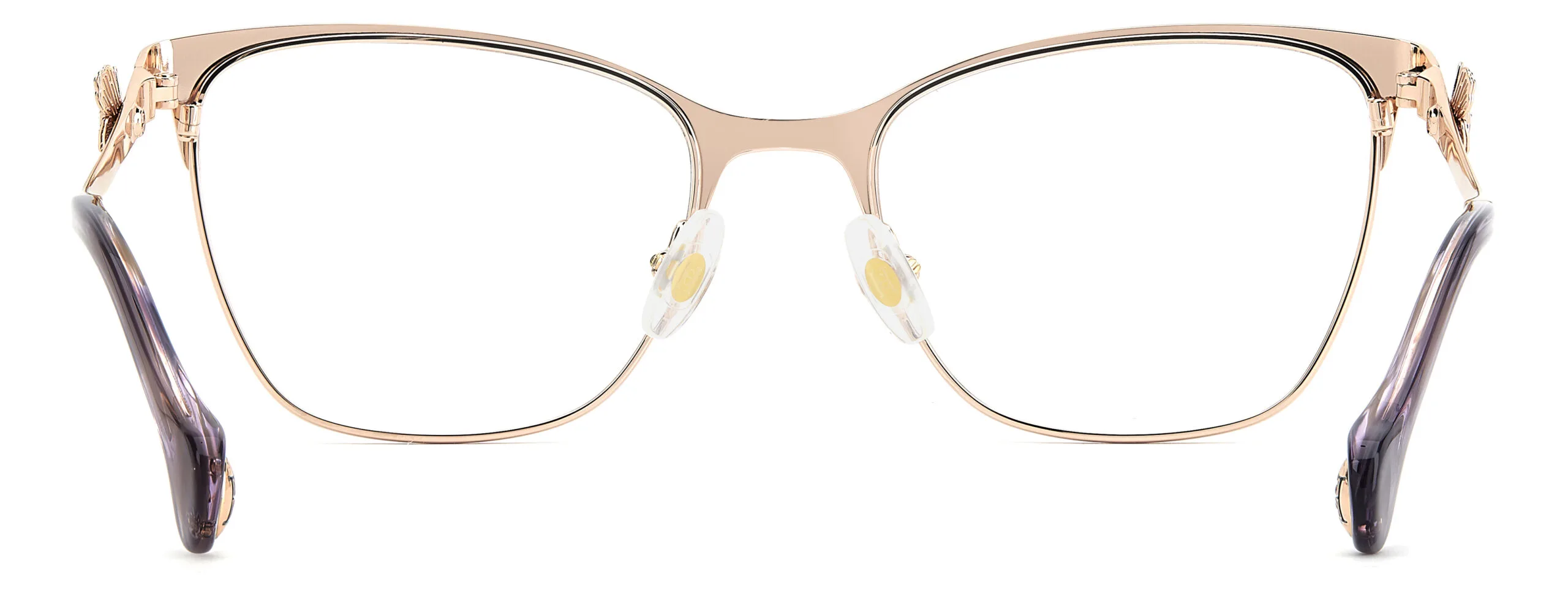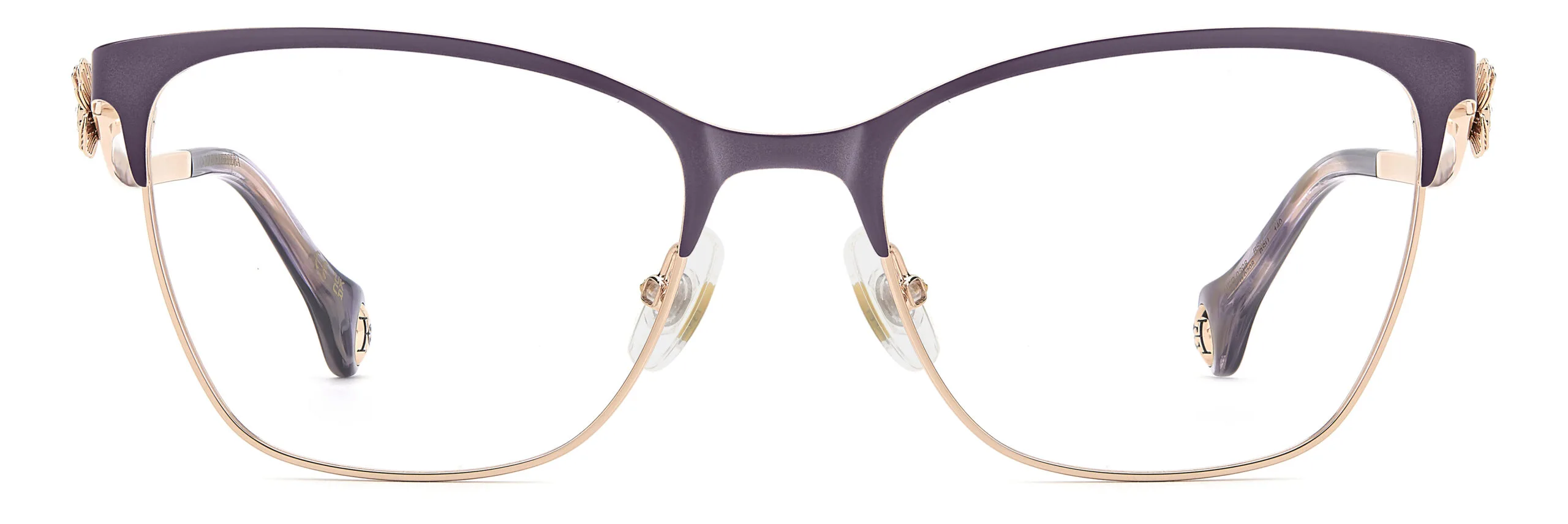 Günün her anında rahatlık ve stil bir arada: Carolina Herrera HER 0398. Metal çerçeve yapısı ve mor altın rengiyle şık bir görünüm sunan bu kedi gözü model, kadın kullanıcılar için ideal bir optik çerçevedir. Ekartman: 54 mm.