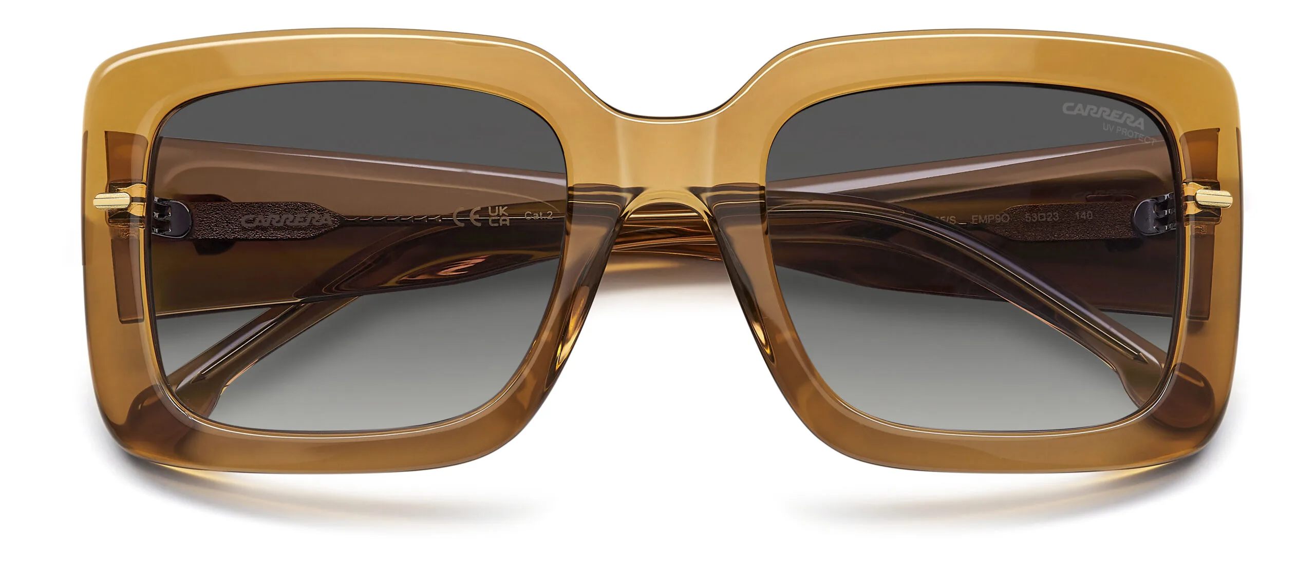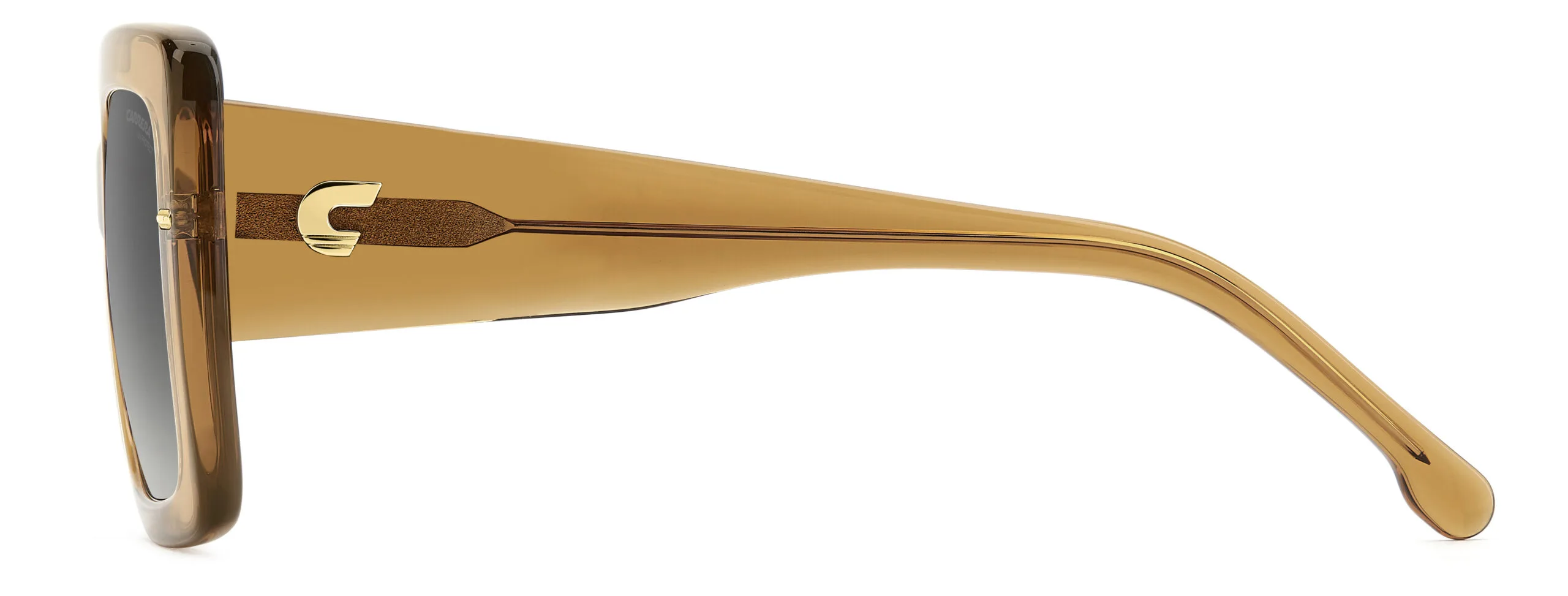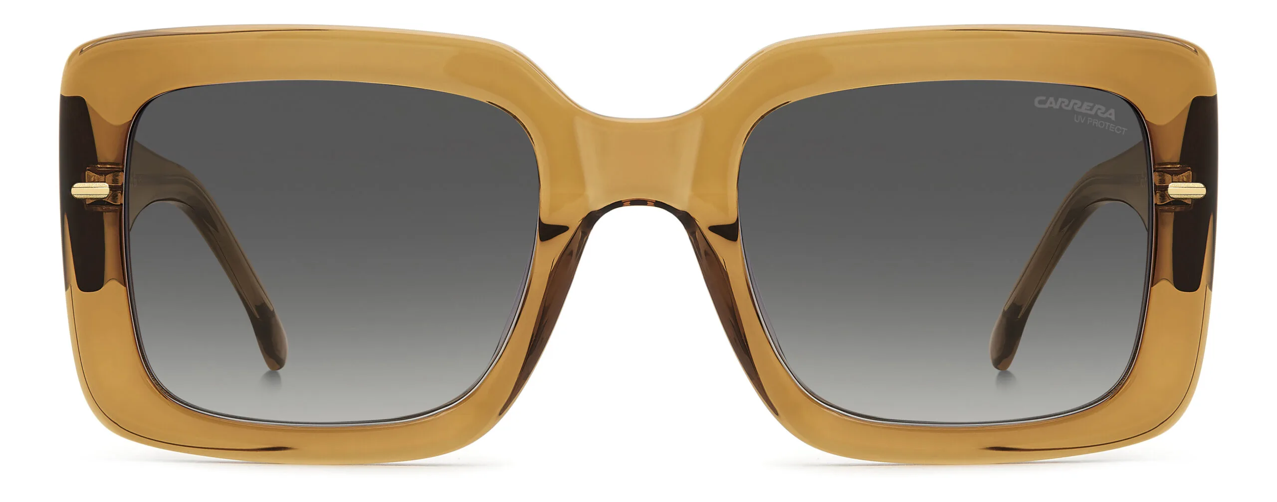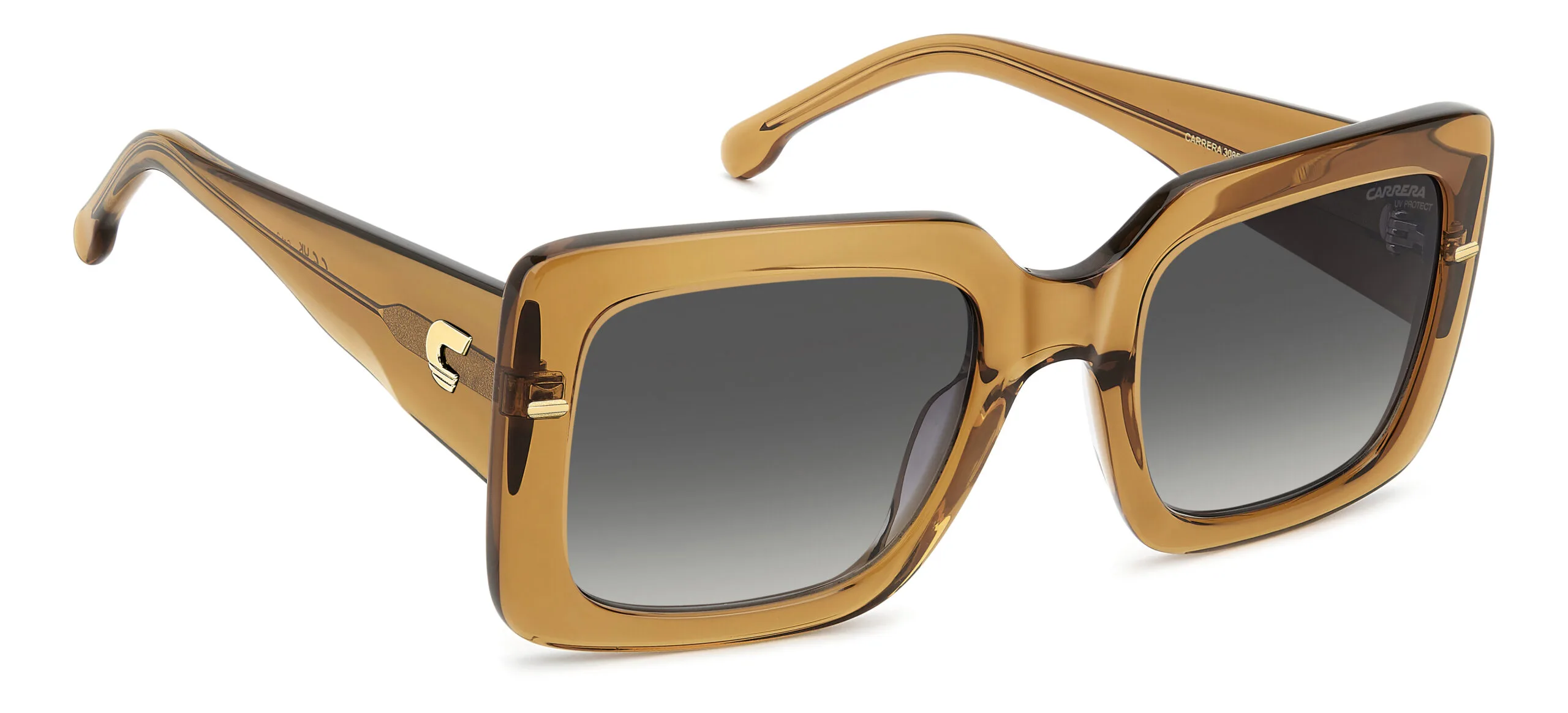 Güneşin altında bile şık görünmek isteyenlere: Carrera CA 3085/S/US. dikdörtgen kesim çerçevesi, ochre renk seçeneği ve asetat yapısıyla Koyu Gri Degrade cam özelliğiyle birlikte ışıkta parlayan bir tasarım. Ekartman: 53 mm.