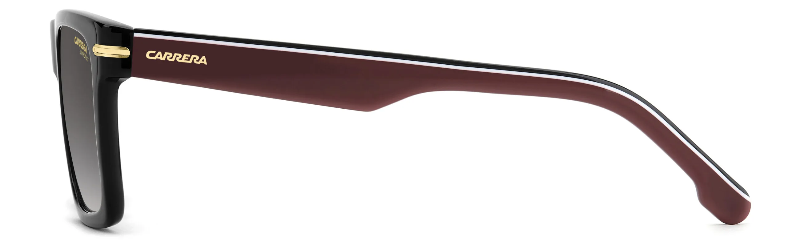 Carrera CA 378/S/US, siyah kırmızı rengi ve asetat çerçevesiyle dikkat çeken bir güneş gözlüğü. dikdörtgen düz üst formuyla erkek yüz hatlarına uyum sağlayan model, Koyu Gri Degrade camlı versiyonuyla UV koruması sunarken modern tarzınızı tamamlar. Ekartman: 55 mm.