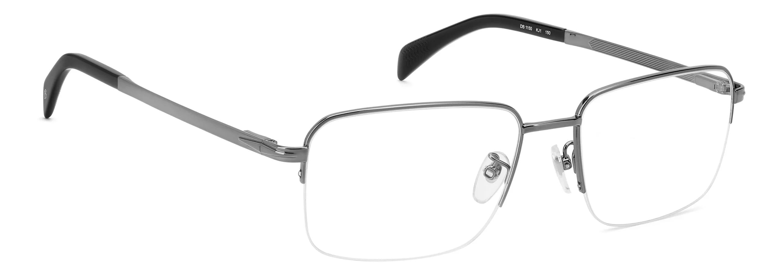 Reçeteli lens uyumlu David Beckham DB 1150/US; dikdörtgen çerçeve geometrisi, koyu rutenyum renk seçeneği ve hafif metal malzeme kullanımıyla uzun süreli kullanımda bile konfor sağlar. Erkek tasarımı. Ekartman: 56, 58 mm.