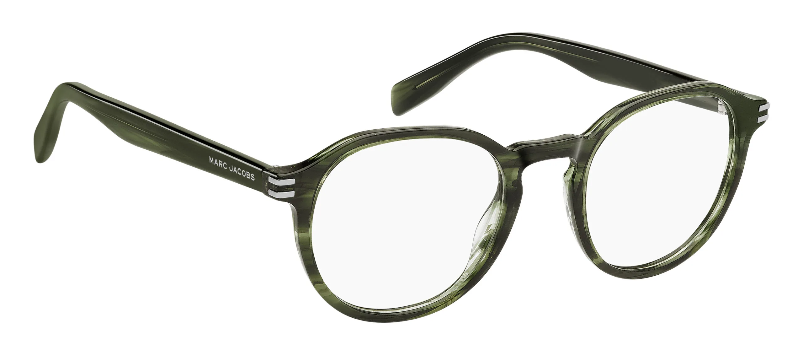 Erkek optik gözlük arayanlar için Marc Jacobs MARC 914: yeşil boynuz desenli renkli asetat çerçevesi ve panthos yapısıyla hem ergonomik hem de estetik bir seçim. Ekartman: 50 mm.
