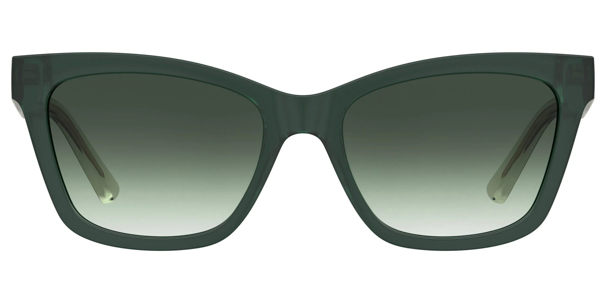 Güneşin altında bile şık görünmek isteyenlere: Moschino Love MOL096/S. dikdörtgen kesim çerçevesi, yeşil renk seçeneği ve selüloz yapısıyla Yeşil Degrade cam özelliğiyle birlikte ışıkta parlayan bir tasarım. Ekartman: 55 mm.