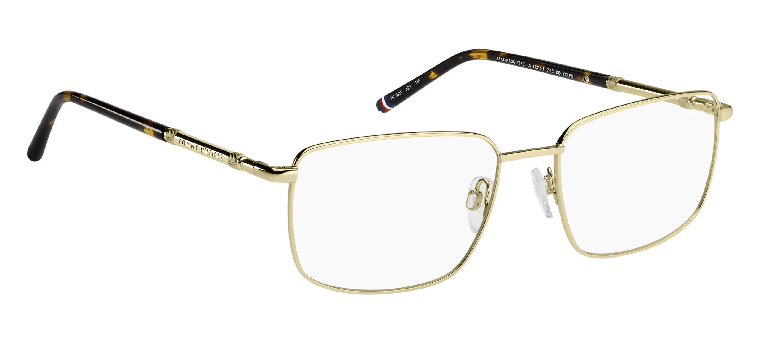 Erkek optik gözlük arayanlar için Tommy Hilfiger TH 2331: altın renkli metal çerçevesi ve dikdörtgen yapısıyla hem ergonomik hem de estetik bir seçim. Ekartman: 56 mm.