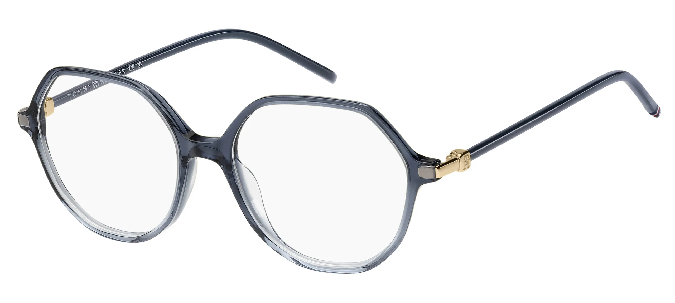 Reçeteli lens uyumlu Tommy Hilfiger TH 2340; yuvarlak geometrik çerçeve geometrisi, mavi degrade renk seçeneği ve hafif asetat malzeme kullanımıyla uzun süreli kullanımda bile konfor sağlar. Kadın tasarımı. Ekartman: 52 mm.