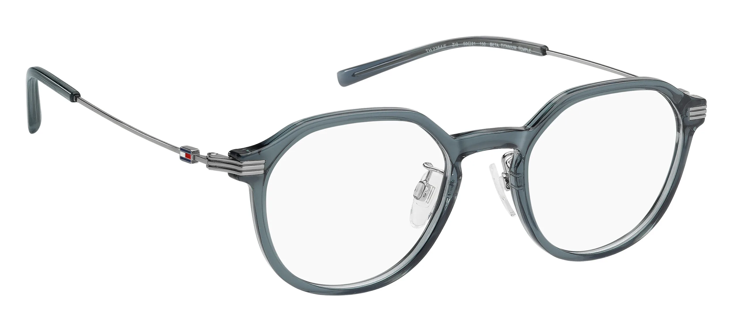 Erkek optik gözlük arayanlar için Tommy Hilfiger TH 2364/F: deniz mavisi renkli enjekte poliamid çerçevesi ve panthos yapısıyla hem ergonomik hem de estetik bir seçim. Ekartman: 50 mm.